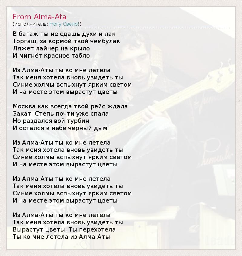 А как ты думаешь, о чем песня "From Alma-Ata" ?