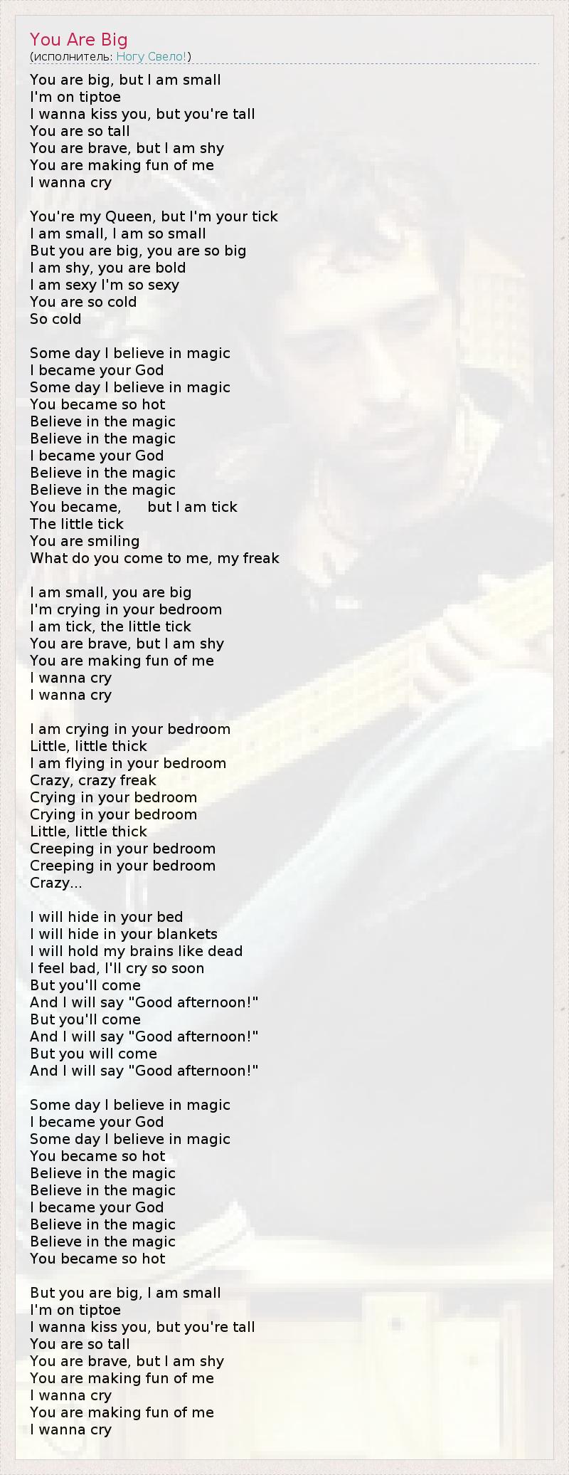 А как ты думаешь, о чем песня "You Are Big" ?