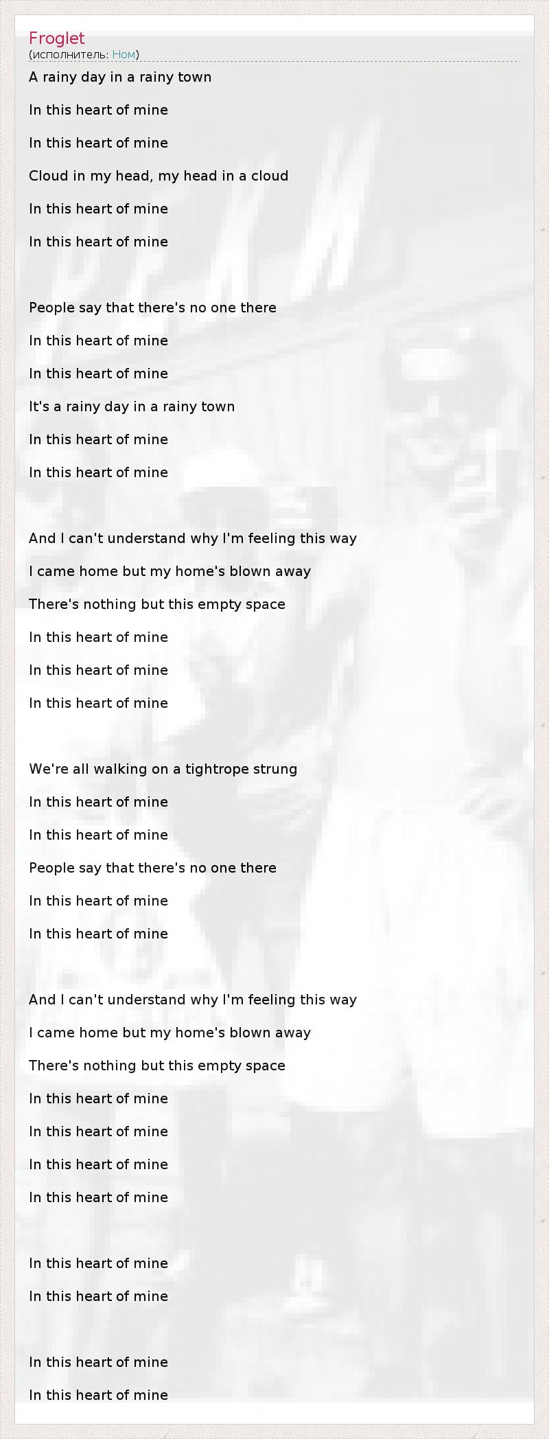 Это интересно:НЕ СУЩЕСТВУЕТ ГРУППЫ С ТАКИМ НАЗВАНИЕМ - «Ном»! Исправьте свои теги! Уважайте артистов!Голосуйте за корректное название - справа внизу жмем на «Внеси поправку» и указываем «НОМ»