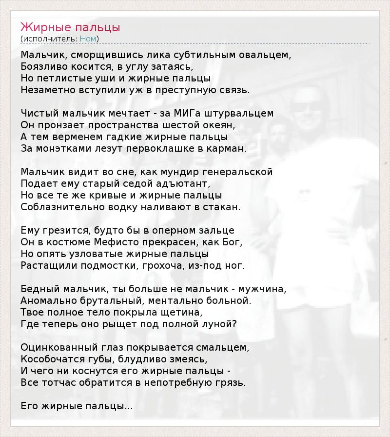 А как ты думаешь, о чем песня "Жирные пальцы" ?
