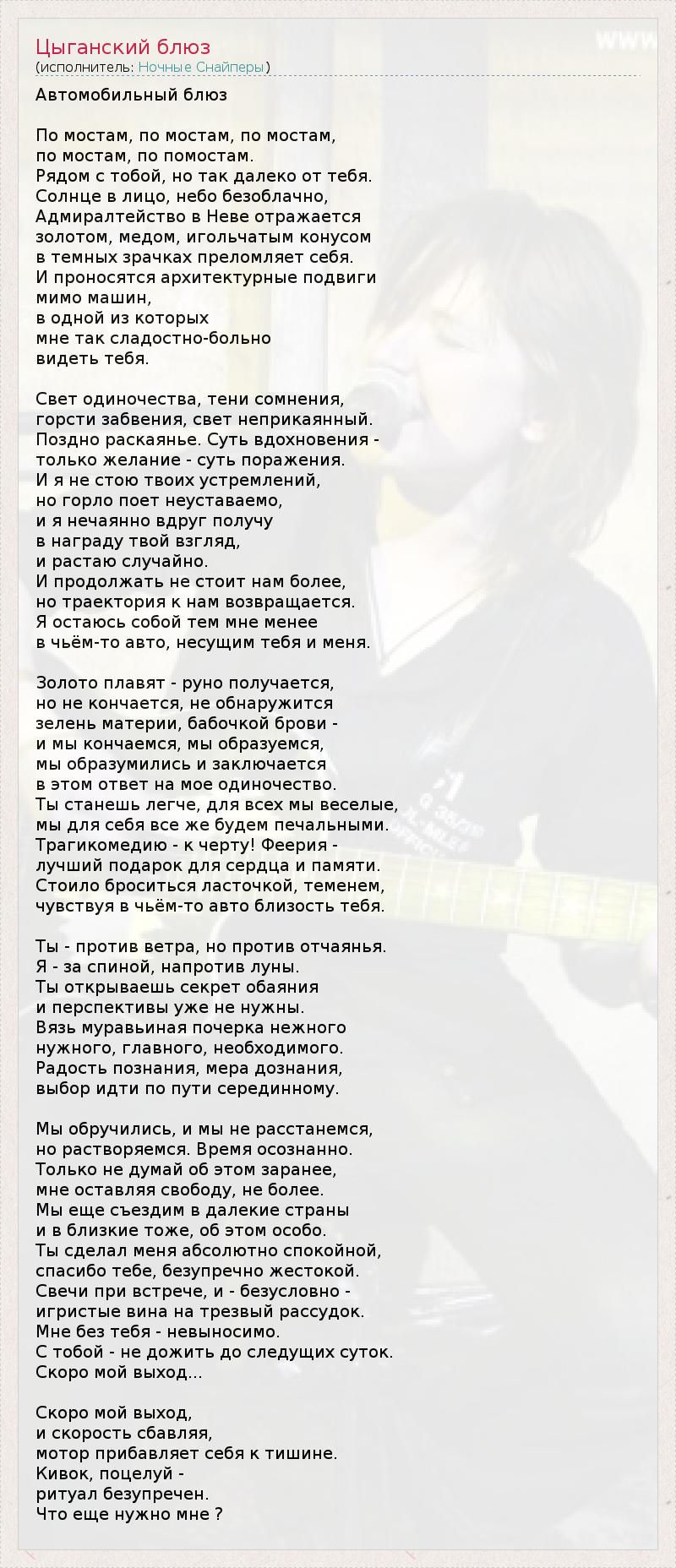 А как ты думаешь, о чем песня "Цыганский блюз" ?