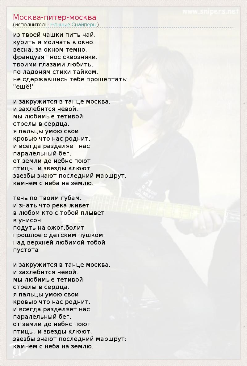 ГлавнаяИсполнителиНочные СнайперыМосква-питер-москва