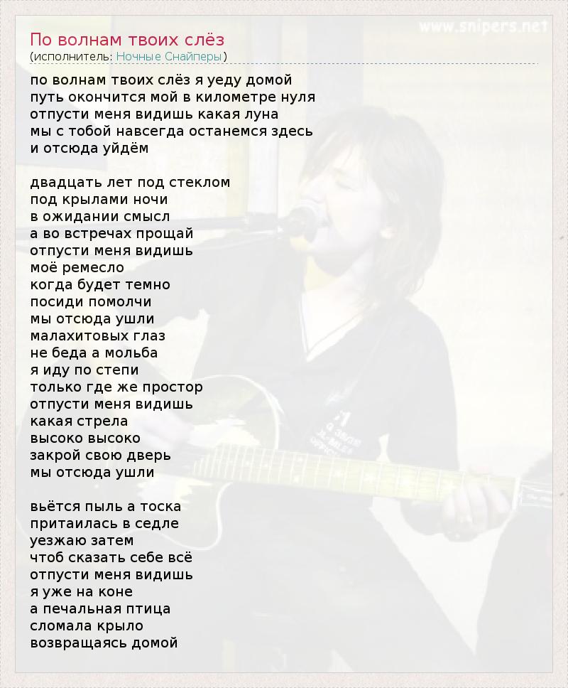 ГлавнаяИсполнителиНочные СнайперыПо волнам твоих слёз