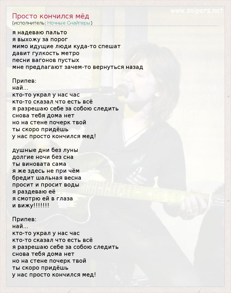 ГлавнаяИсполнителиНочные СнайперыПросто кончился мёд