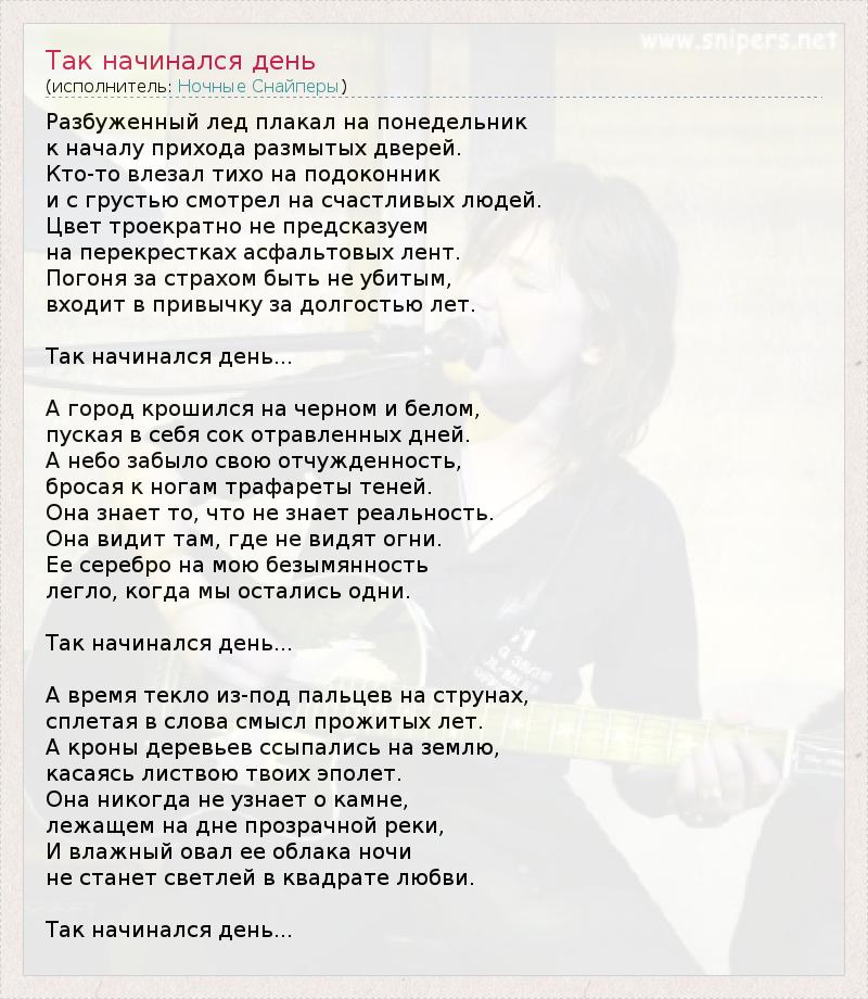 А как ты думаешь, о чем песня "Так начинался день" ?