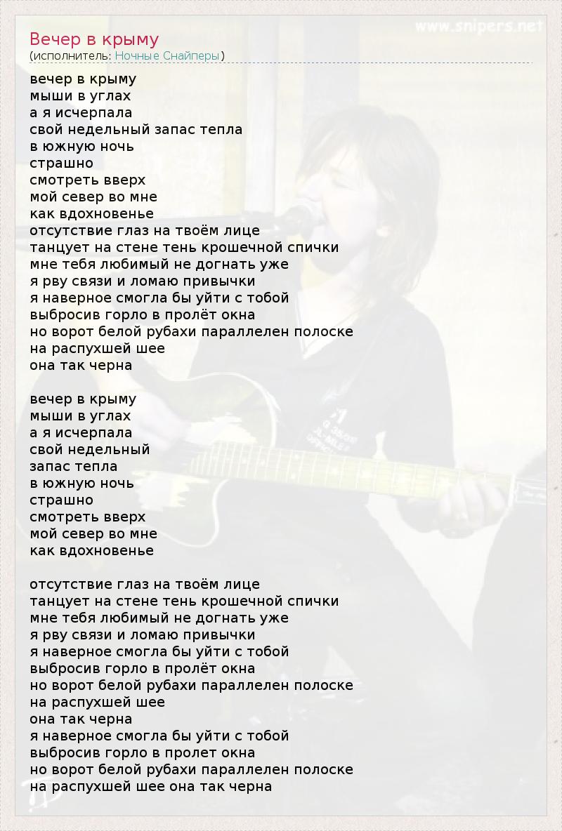 А как ты думаешь, о чем песня "Вечер в крыму" ?