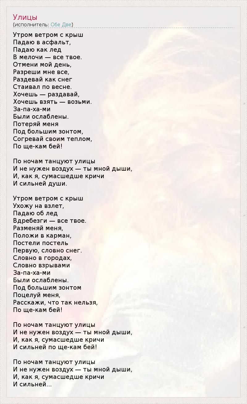 Эти уральские девчонки стали первыми, кто за дюжину лет смог написать нормальные женские рок-песни на русском языке - безо всяких лесбийских намёков, без земфирщины и снайперщины. «Обе Две» с первой строчки не устало спрашивают «Хочешь?», а безапелляционно требуют «Я хочу, чтоб ты снял меня» - закидывают ноги слушателям за уши и не отпускают до конца пластинки. Браво.