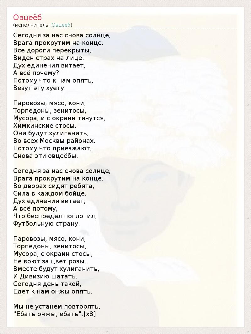 А как ты думаешь, о чем песня "Овцеёб" ?