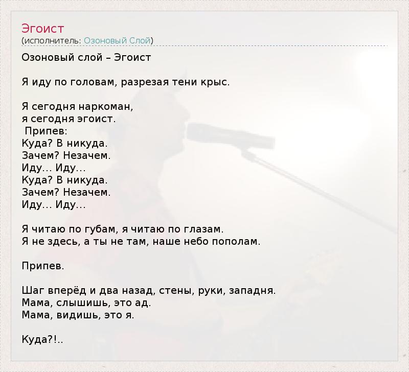 А как ты думаешь, о чем песня "Эгоист" ?