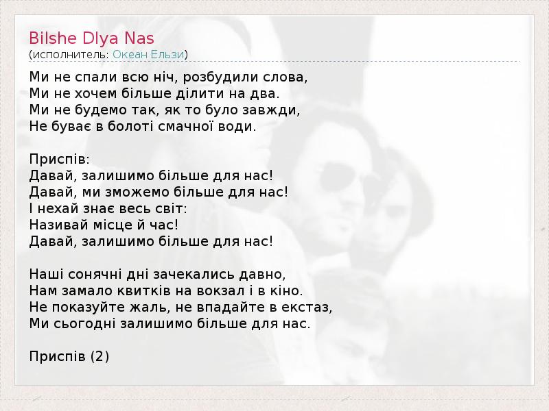 А как ты думаешь, о чем песня "Bilshe Dlya Nas" ?
