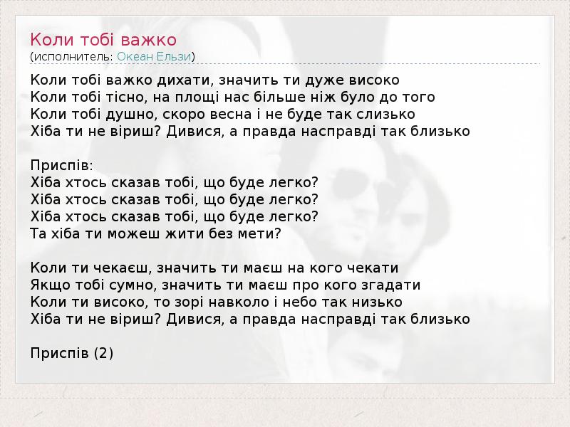 А как ты думаешь, о чем песня "Коли тобі важко" ?
