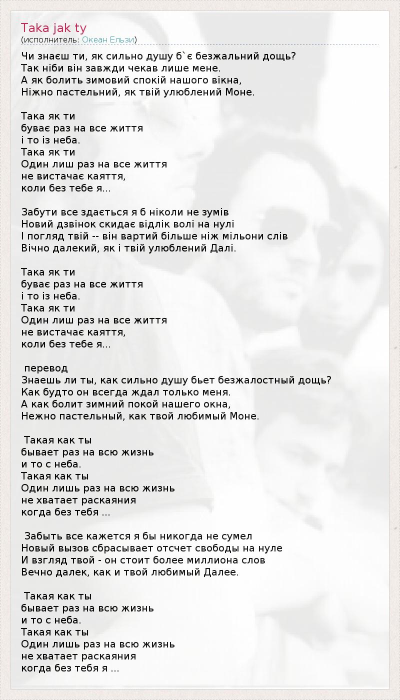 А как ты думаешь, о чем песня "Taka jak ty" ?
