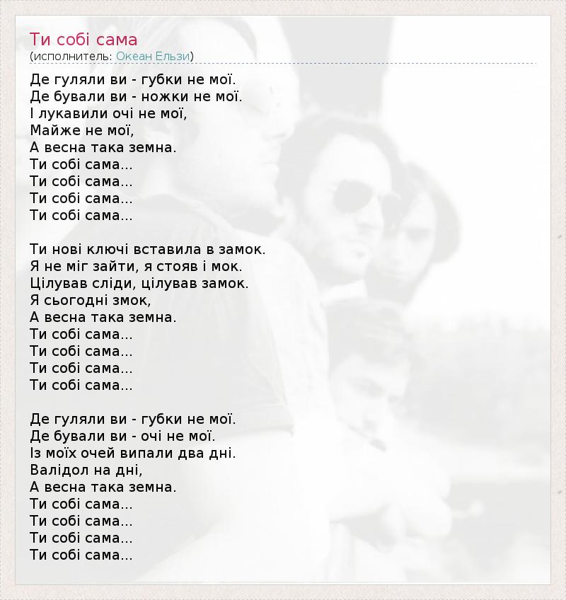 А как ты думаешь, о чем песня "Ти собі сама" ?