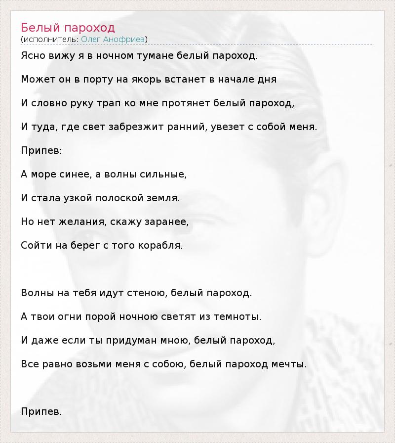 А как ты думаешь, о чем песня "Белый пароход" ?
