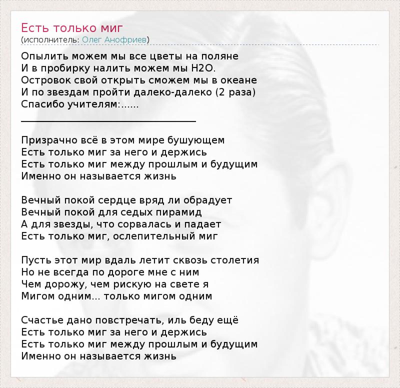 А как ты думаешь, о чем песня "Есть только миг" ?