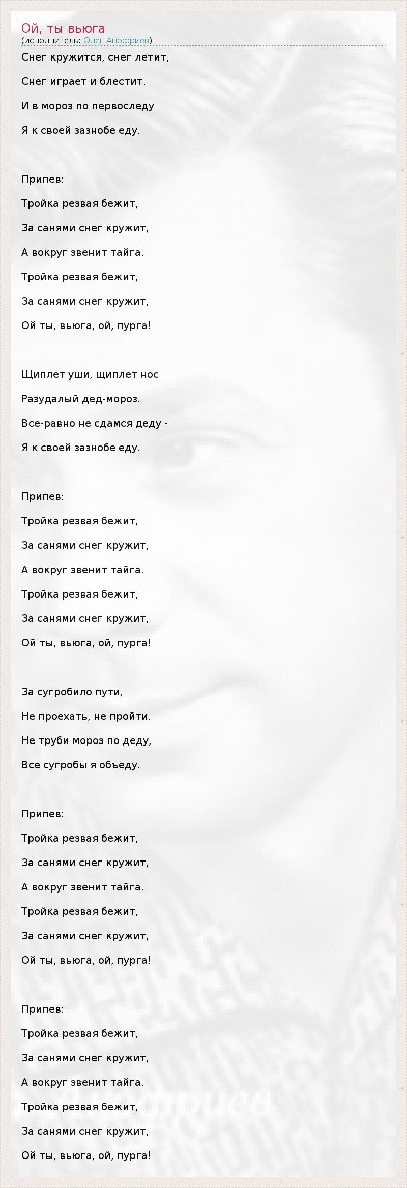 А как ты думаешь, о чем песня "Ой, ты вьюга" ?