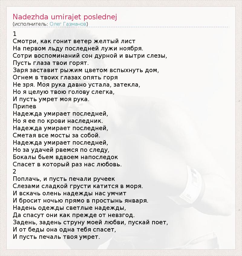 А как ты думаешь, о чем песня "Nadezhda umirajet poslednej" ?