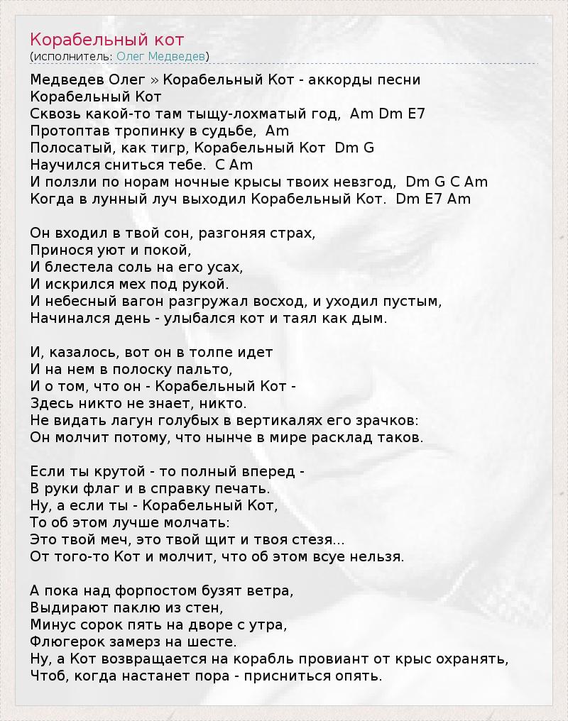 А как ты думаешь, о чем песня "Корабельный кот" ?