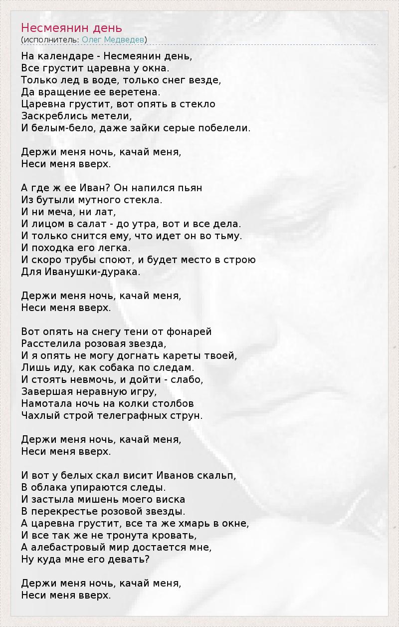 А как ты думаешь, о чем песня "Несмеянин день" ?