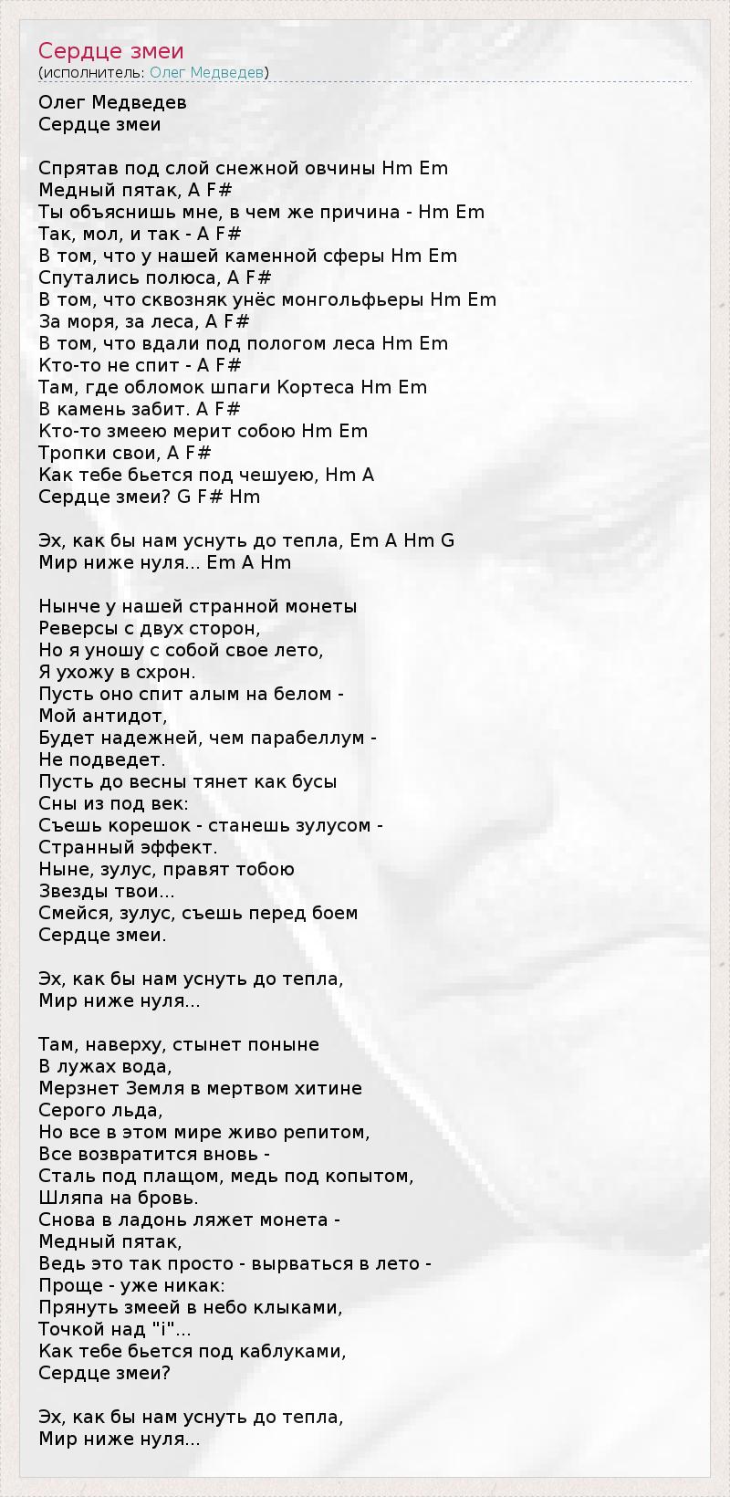 А как ты думаешь, о чем песня "Сердце змеи" ?