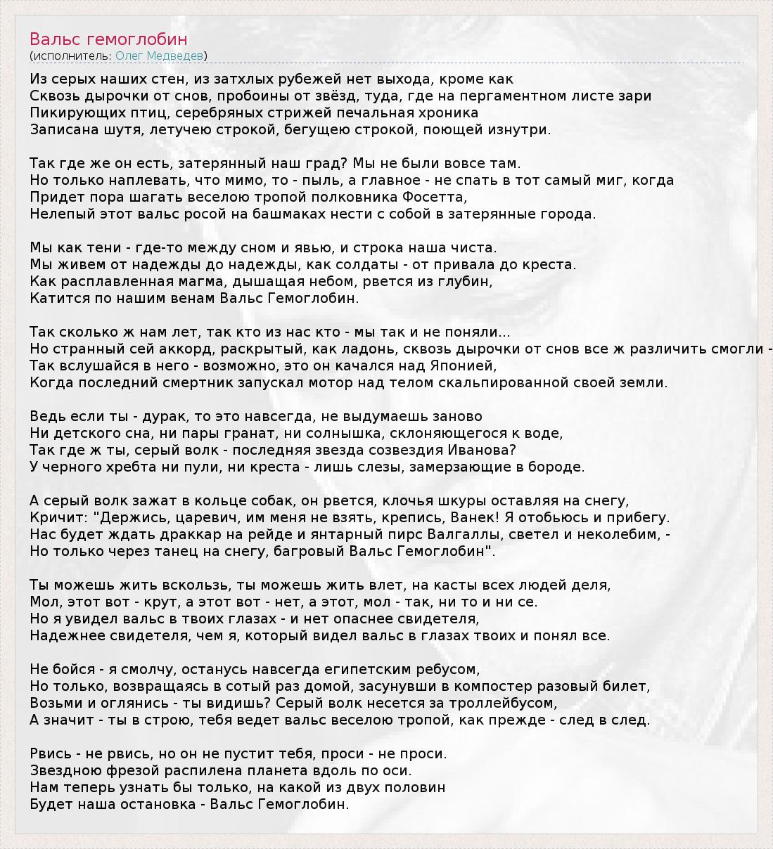 А как ты думаешь, о чем песня "Вальс гемоглобин" ?