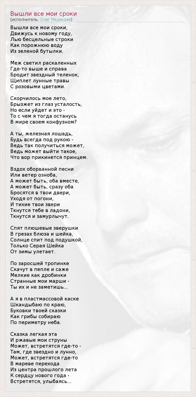 ГлавнаяИсполнителиОлег МедведевВышли все мои сроки