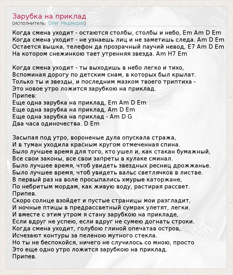 ГлавнаяИсполнителиОлег МедведевЗарубка на приклад