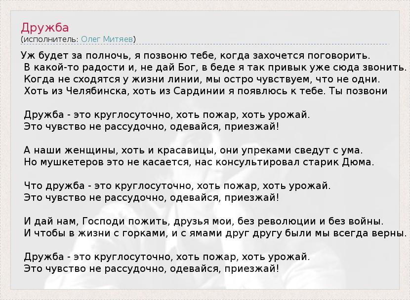 А как ты думаешь, о чем песня "Дружба" ?