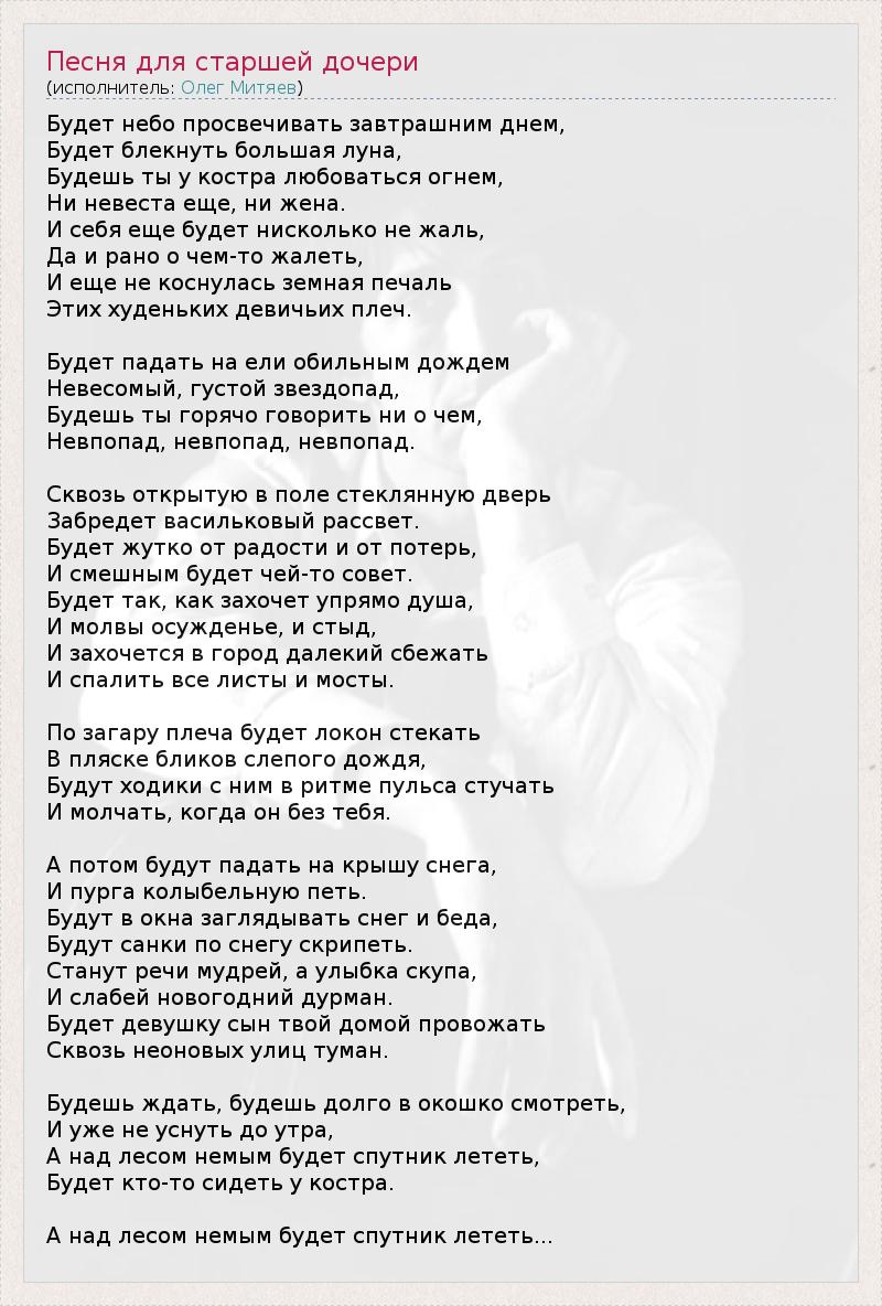 ГлавнаяИсполнителиОлег МитяевПесня для старшей дочери