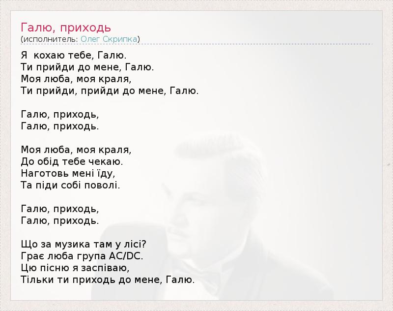 А как ты думаешь, о чем песня "Галю, приходь" ?