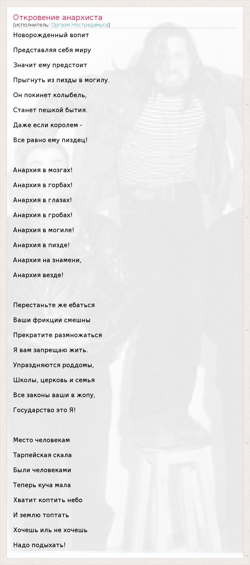 А как ты думаешь, о чем песня "Откровение анархиста" ?