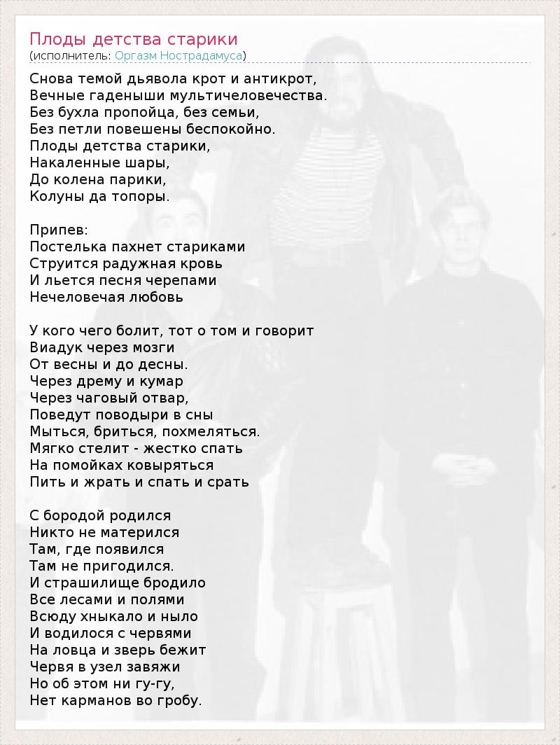 ГлавнаяИсполнителиОргазм НострадамусаПлоды детства старики