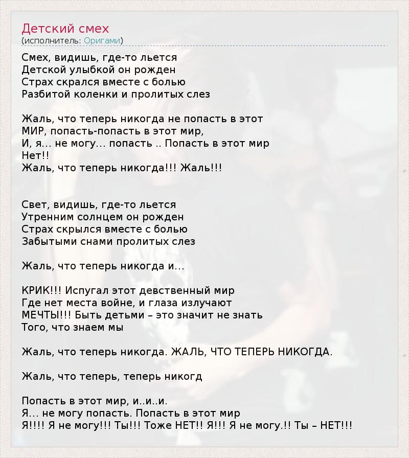 А как ты думаешь, о чем песня "Детский смех" ?