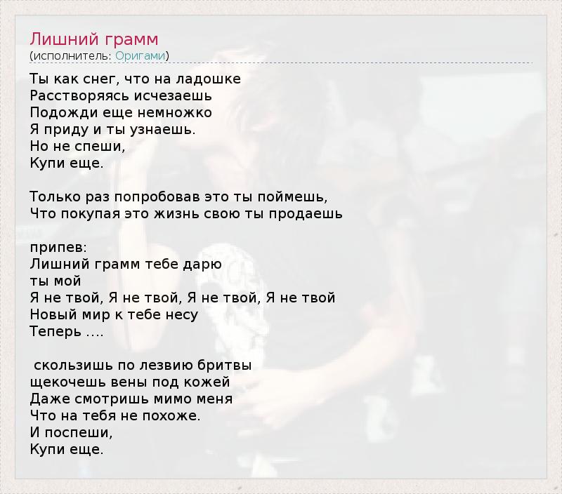 А как ты думаешь, о чем песня "Лишний грамм" ?