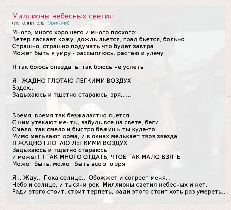 А как ты думаешь, о чем песня "Миллионы небесных светил" ?