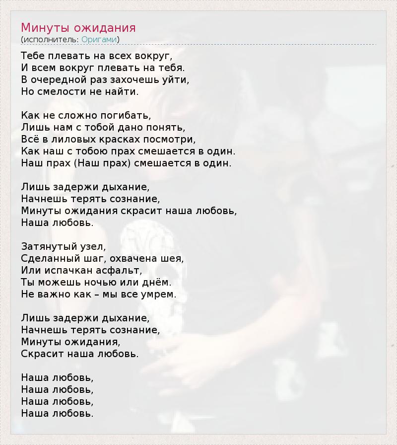 ГлавнаяИсполнителиОригамиМинуты ожидания