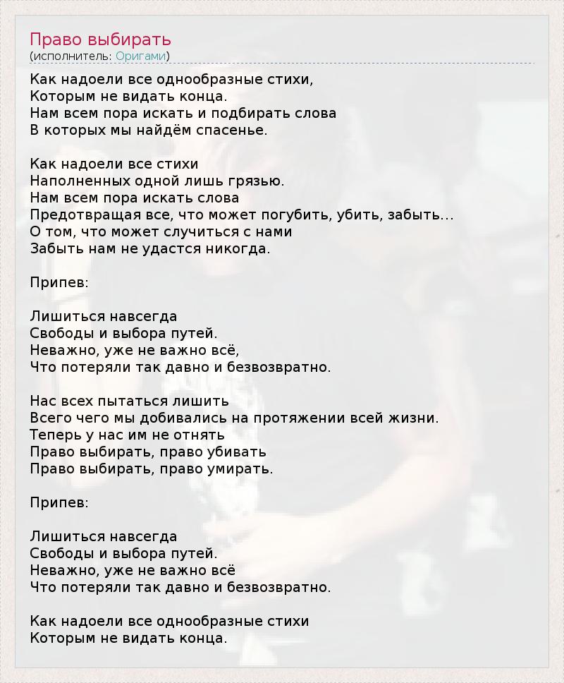ГлавнаяИсполнителиОригамиПраво выбирать