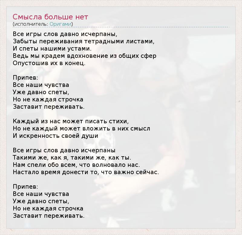 Оригами - Смысла больше нет - Текст песни, слушать онлайн Оригами - Смысла больше нет - Текст песни, слушать онлайн