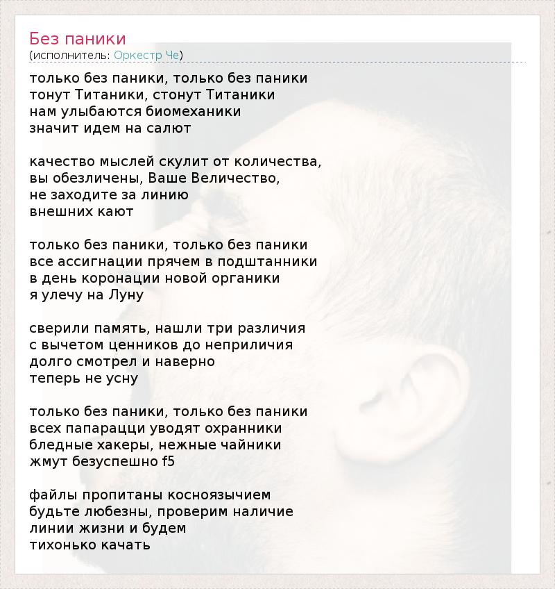 А как ты думаешь, о чем песня "Без паники" ?