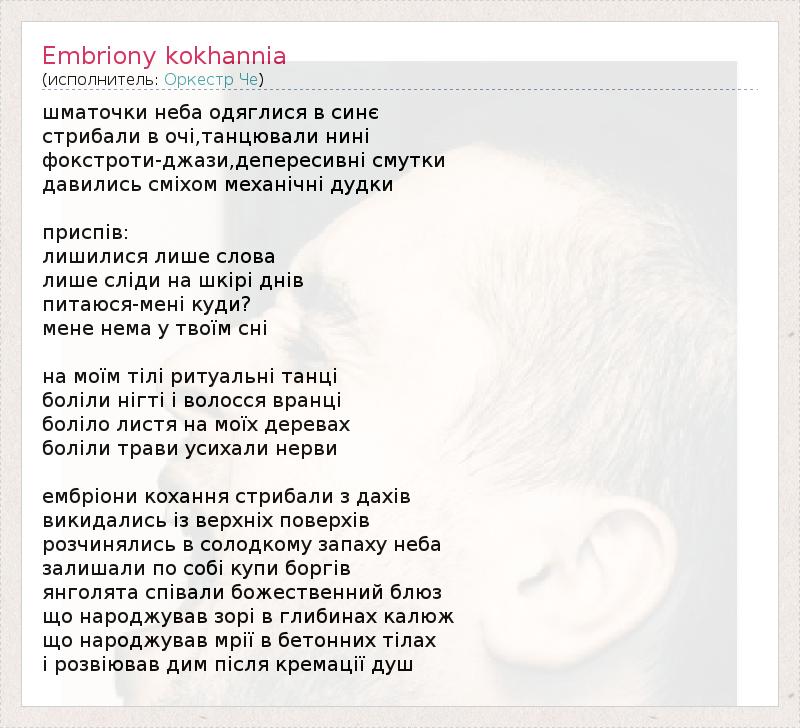 А как ты думаешь, о чем песня "Embriony kokhannia" ?