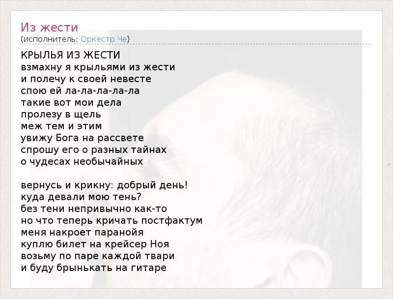 А как ты думаешь, о чем песня "Из жести" ?