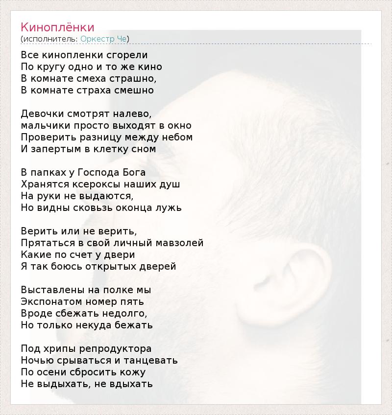 А как ты думаешь, о чем песня "Киноплёнки" ?