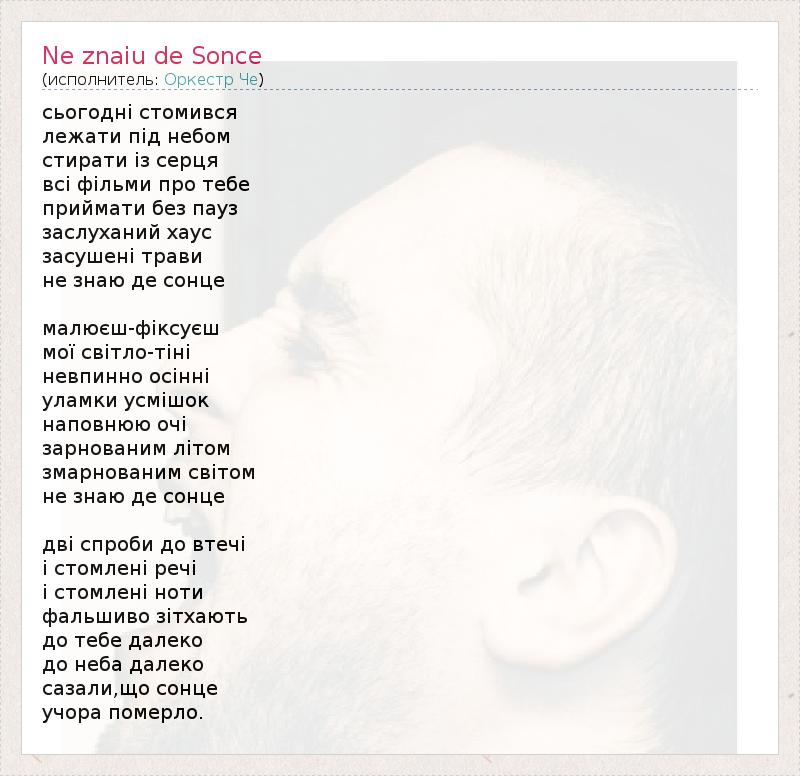 А как ты думаешь, о чем песня "Ne znaiu de Sonce" ?