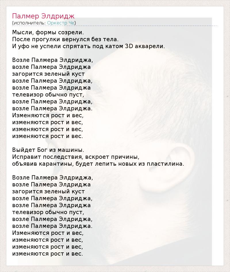 А как ты думаешь, о чем песня "Палмер Элдридж" ?