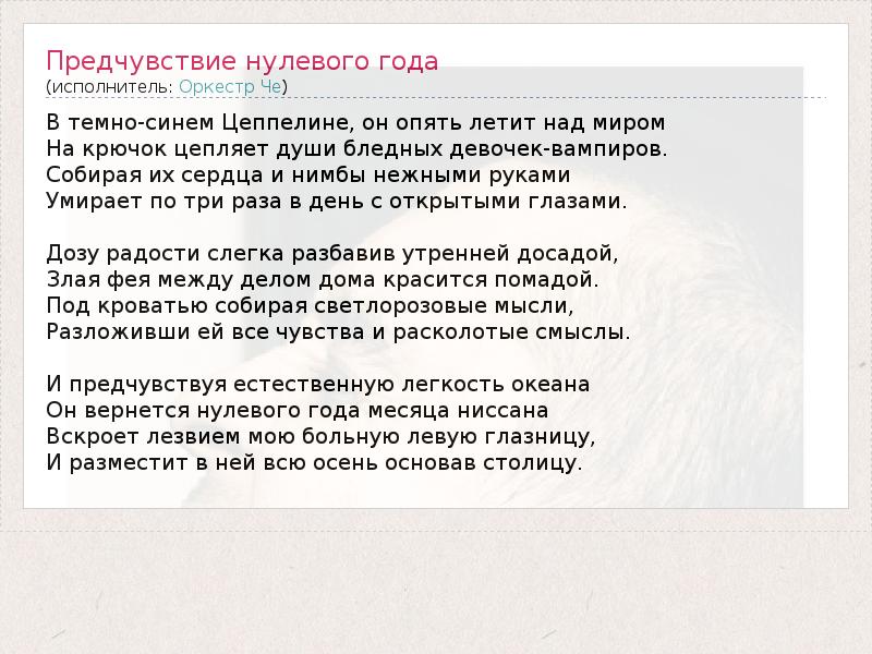 А как ты думаешь, о чем песня "Предчувствие нулевого года" ?
