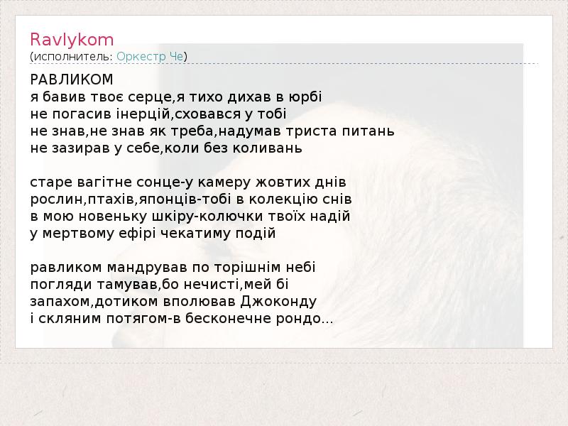 А как ты думаешь, о чем песня "Ravlykom" ?
