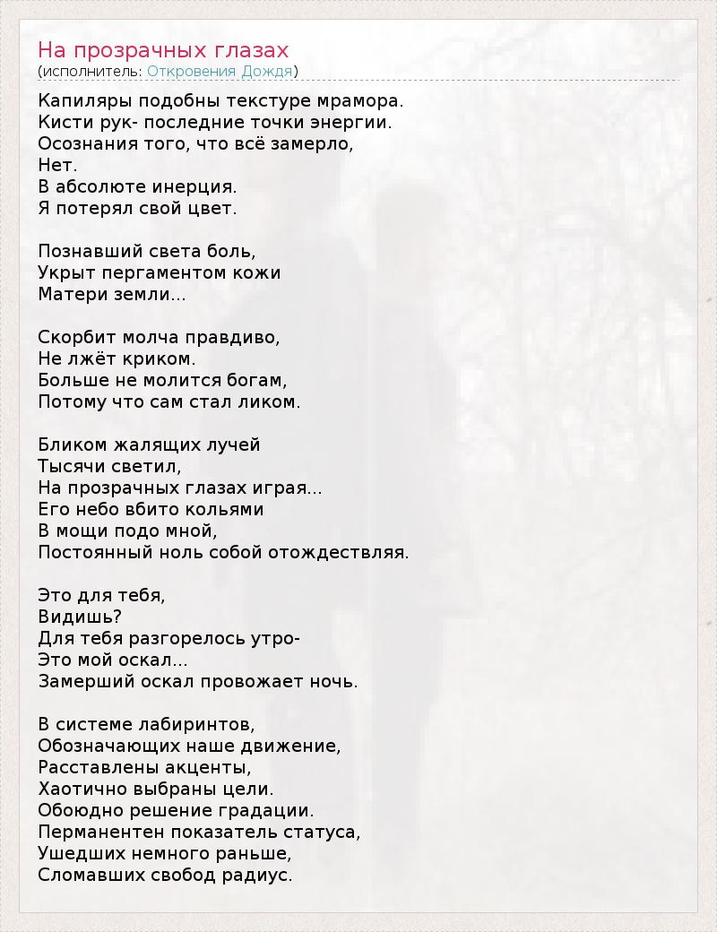 ГлавнаяИсполнителиОткровения ДождяНа прозрачных глазах