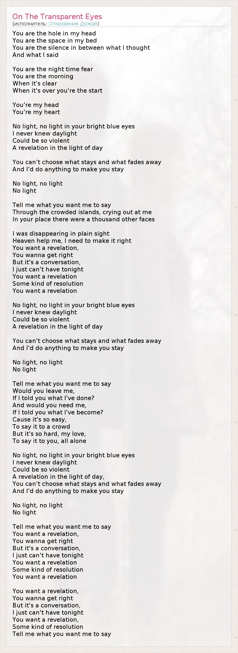 А как ты думаешь, о чем песня "On The Transparent Eyes" ?