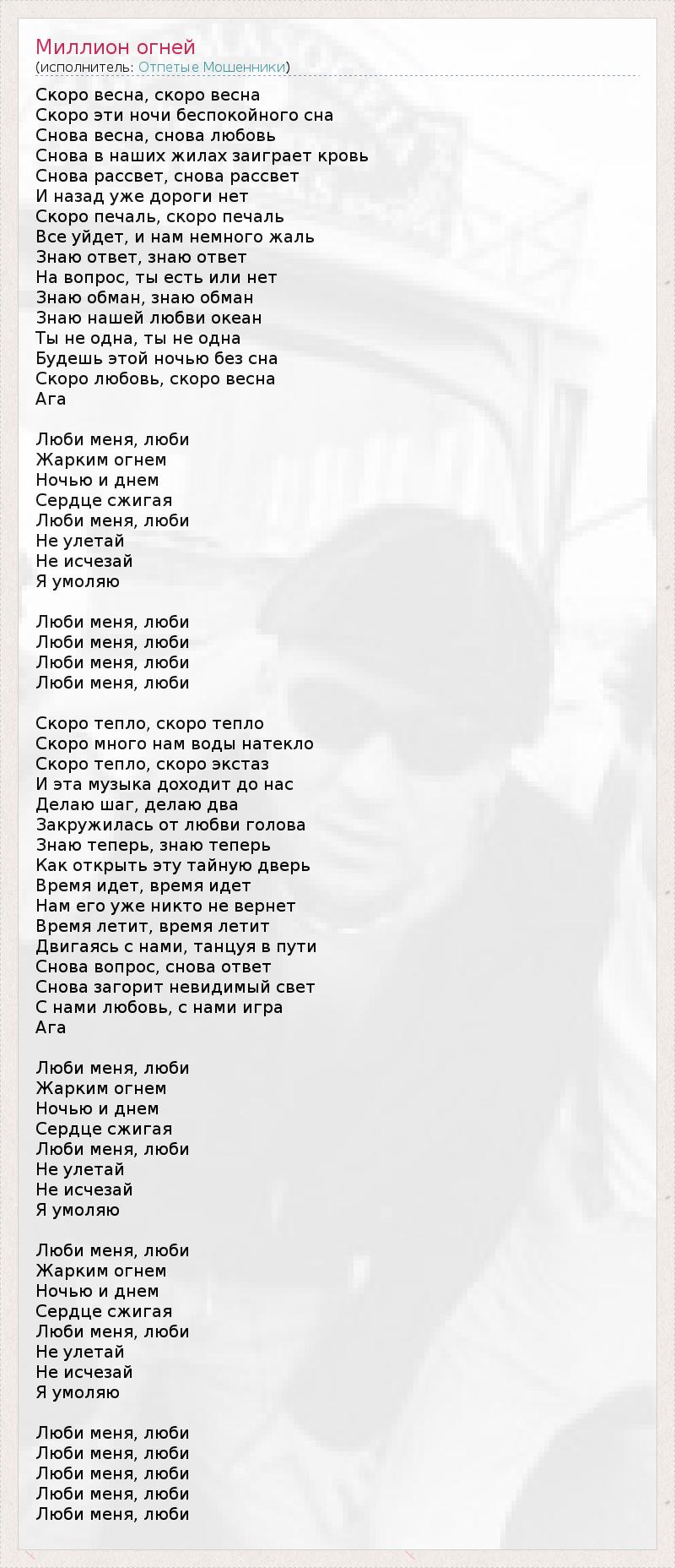 А как ты думаешь, о чем песня "Миллион огней" ?