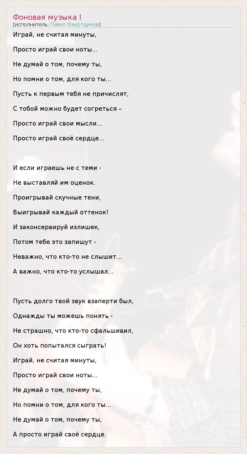 А как ты думаешь, о чем песня "Фоновая музыка I" ?